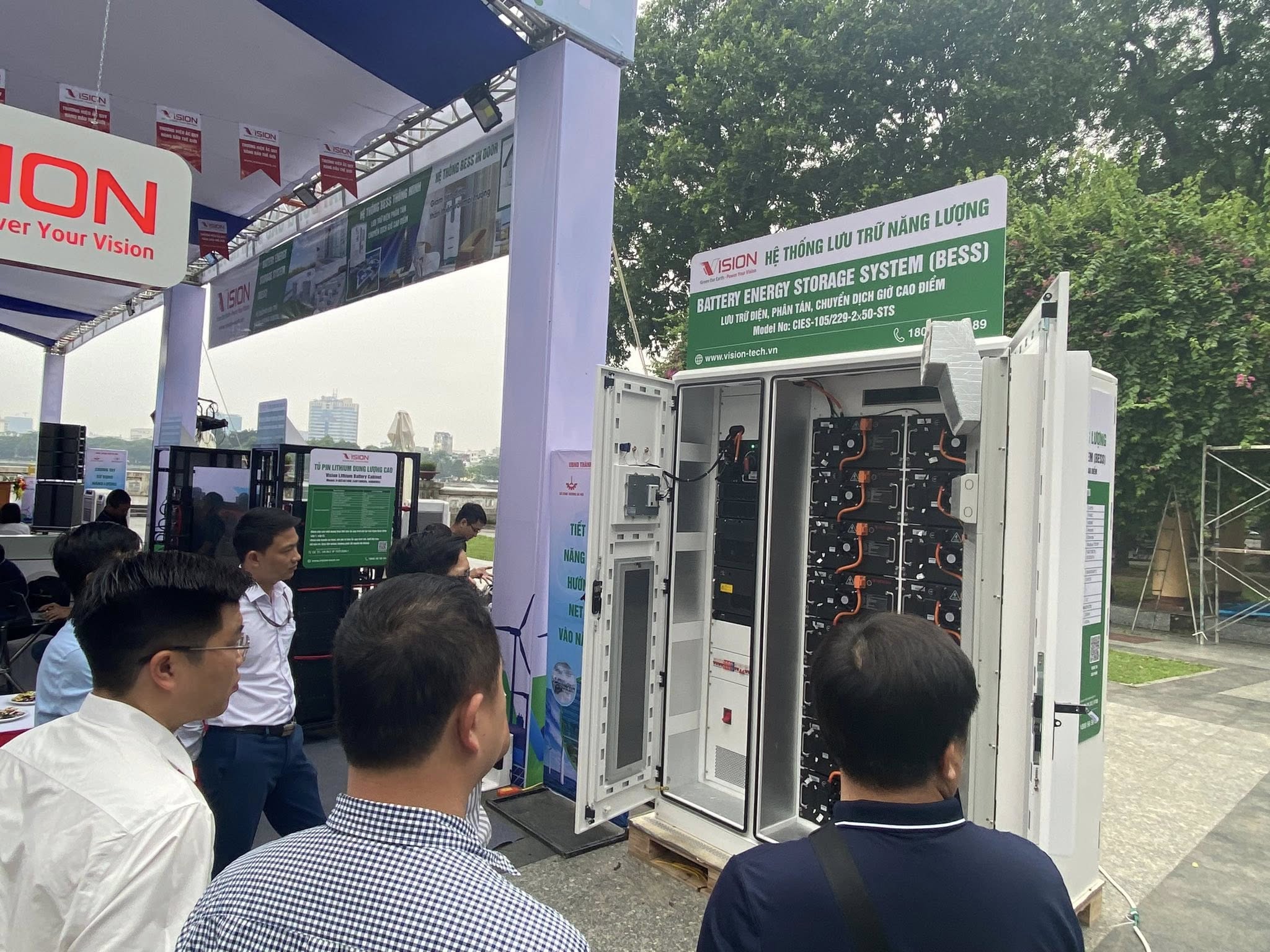 At the conference, Vision-tech demonstrated the actual operating model of the BESS system, attracting great attention from representatives of authorities, businesses as well as people. Many visitors expressed their excitement about the ability to store electricity during off-peak hours and use it during peak hours, effectively reducing monthly electricity bills.