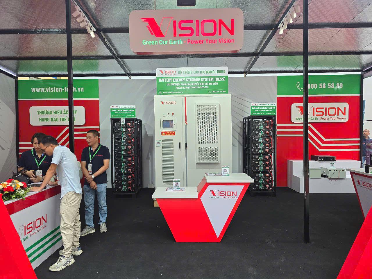 Tại triển lãm, Tổng giám đốc của Vision-tech tại diễn đàn sự kiện cũng chia sẻ các giải pháp BESS với nhiều quy mô khác nhau – từ hệ thống lưu trữ phân tán cho hộ gia đình và doanh nghiệp vừa, đến các container BESS công suất lớn phục vụ nhà máy điện và lưới truyền tải. Hệ thống được tích hợp đầy đủ các thành phần tiên tiến như bộ biến đổi công suất (PCS), hệ thống quản lý năng lượng (EMS), quản lý pin thông minh (BMS) và các tính năng an toàn đa tầng như phát hiện khí cháy, làm mát chủ động và phòng cháy chữa cháy tự động. Sự hiện diện của Vision-tech tại triển lãm không chỉ thể hiện năng lực công nghệ, mà còn là cam kết đồng hành cùng Việt Nam trên hành trình phát triển năng lượng sạch và bền vững.